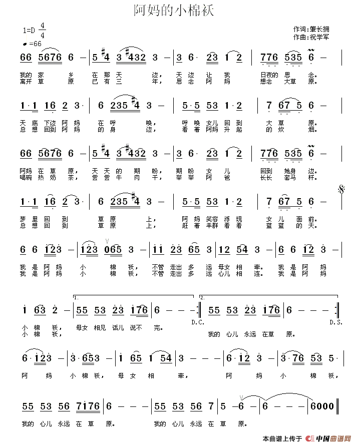 我是阿妈小棉袄,不管走出多远心儿相连。