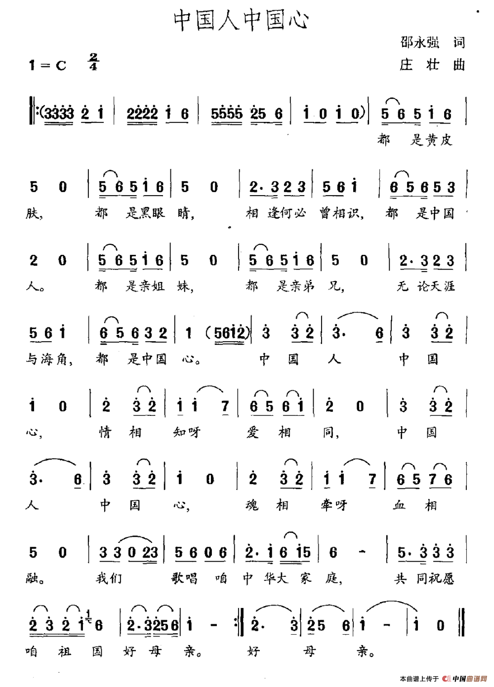 关于《中国人中国心》曲谱的评论