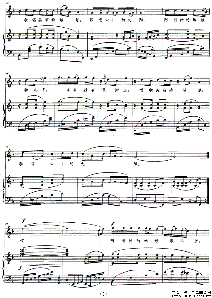 提示:在曲谱图片上单击右键,选择"图片另存为..."即可将曲谱保存到您的电脑中,打印时候可将图片插入到WORD中,调整合适大小打印即可。