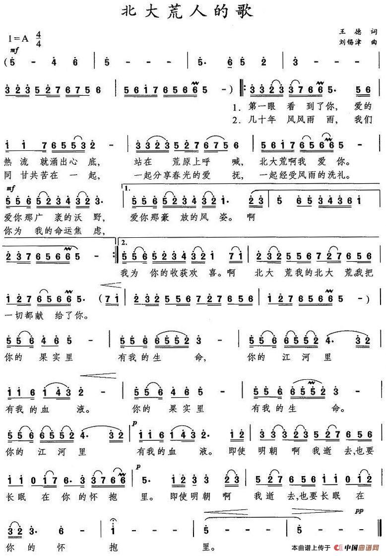 关于《北大荒人的歌》曲谱的评论
