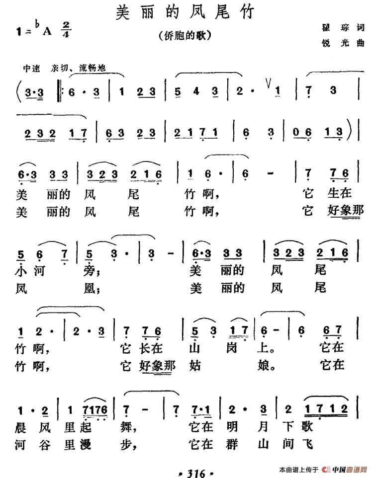 关于《美丽的凤尾竹》曲谱的评论