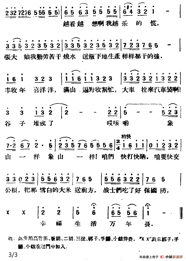 关于《张大娘唱丰收》曲谱的评论