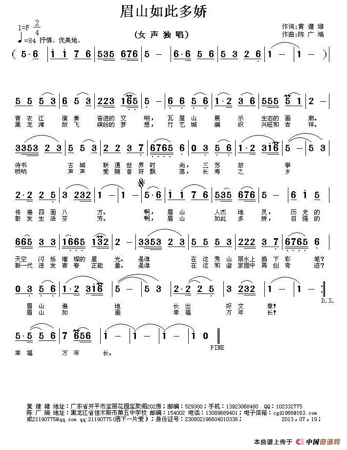 关于《眉山如此多娇》曲谱的评论