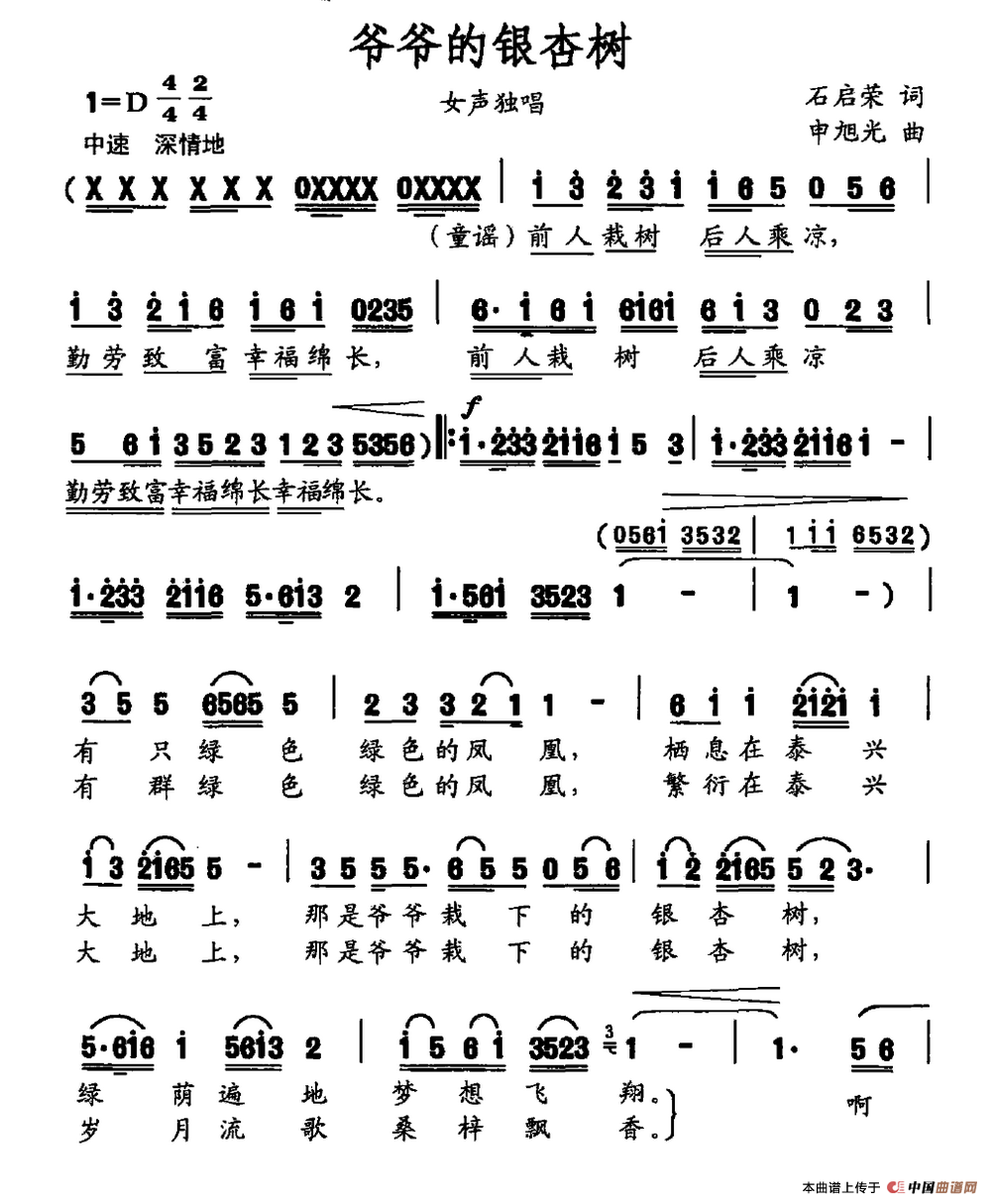 关于《爷爷的银杏树》曲谱的评论