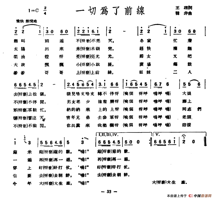 作词:王理 作曲:韩非 来源:《中国曲谱网》 上传:秋叶起舞