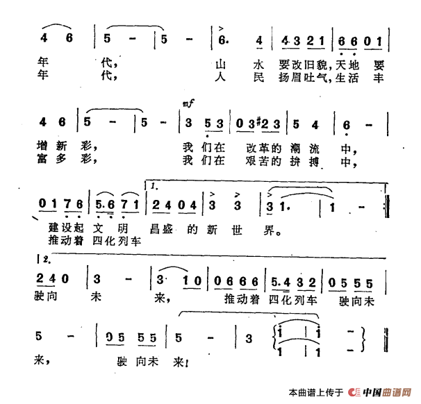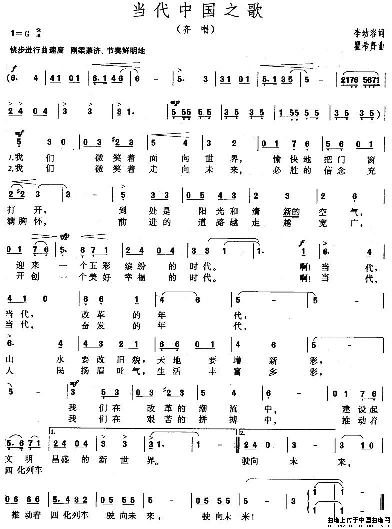 当前位置: 首页 民歌曲谱 六字歌名 当代中国之歌