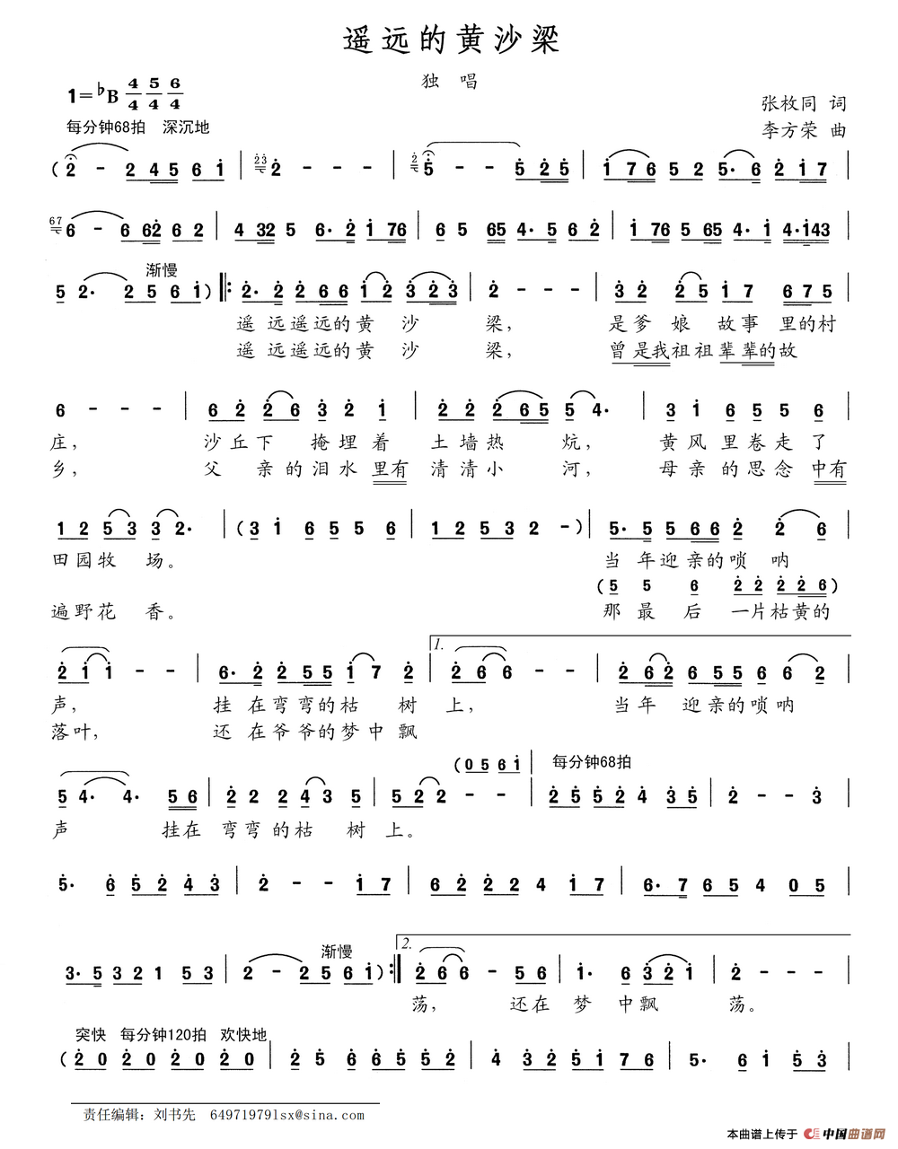 关于《遥远的黄沙梁》曲谱的评论