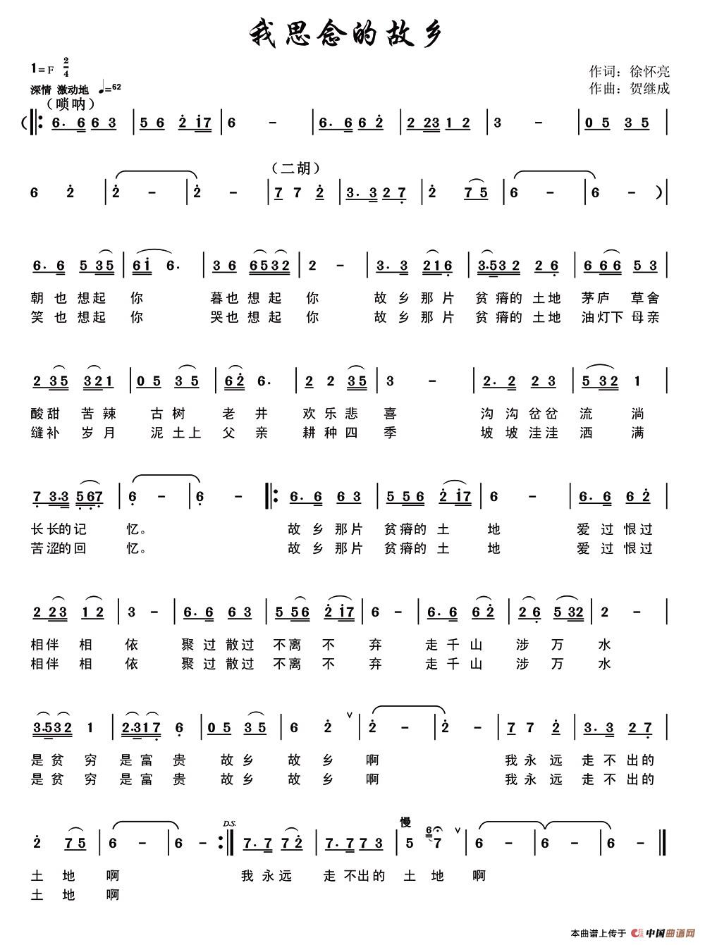 关于《我思念的故乡》曲谱的评论