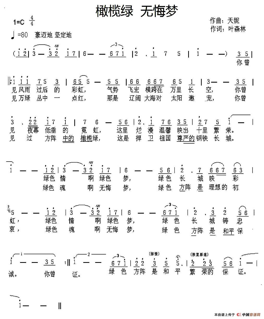 绿色魂,啊,无悔梦,绿色方阵是和平繁荣的保证!