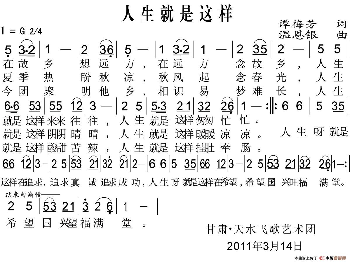 关于《人生就是这样》曲谱的评论
