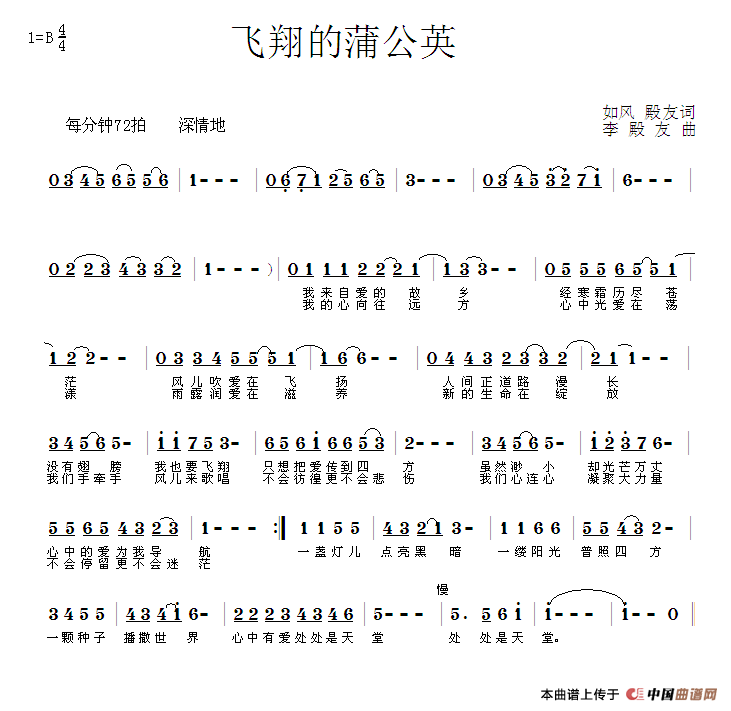 致谢:《中国曲谱网》衷心感谢作者老师馈赠原版歌谱!