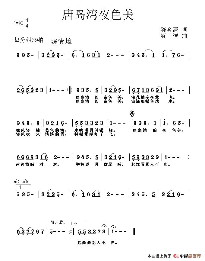 致谢:《中国曲谱网》衷心感谢作者老师馈赠原版歌谱!
