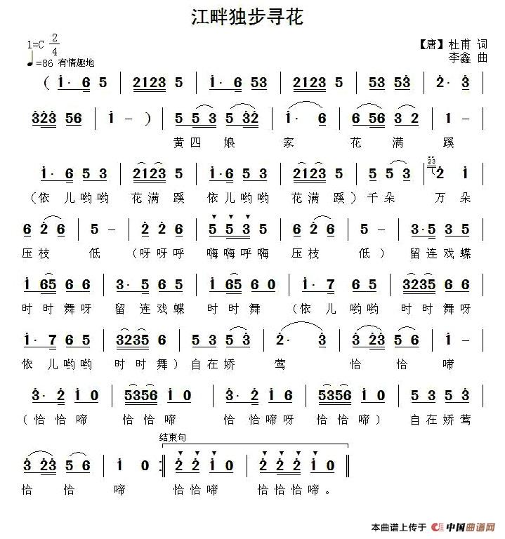黄四娘家花满蹊 千朵万朵压枝低 留连戏蝶时时舞 自在娇莺恰恰啼
