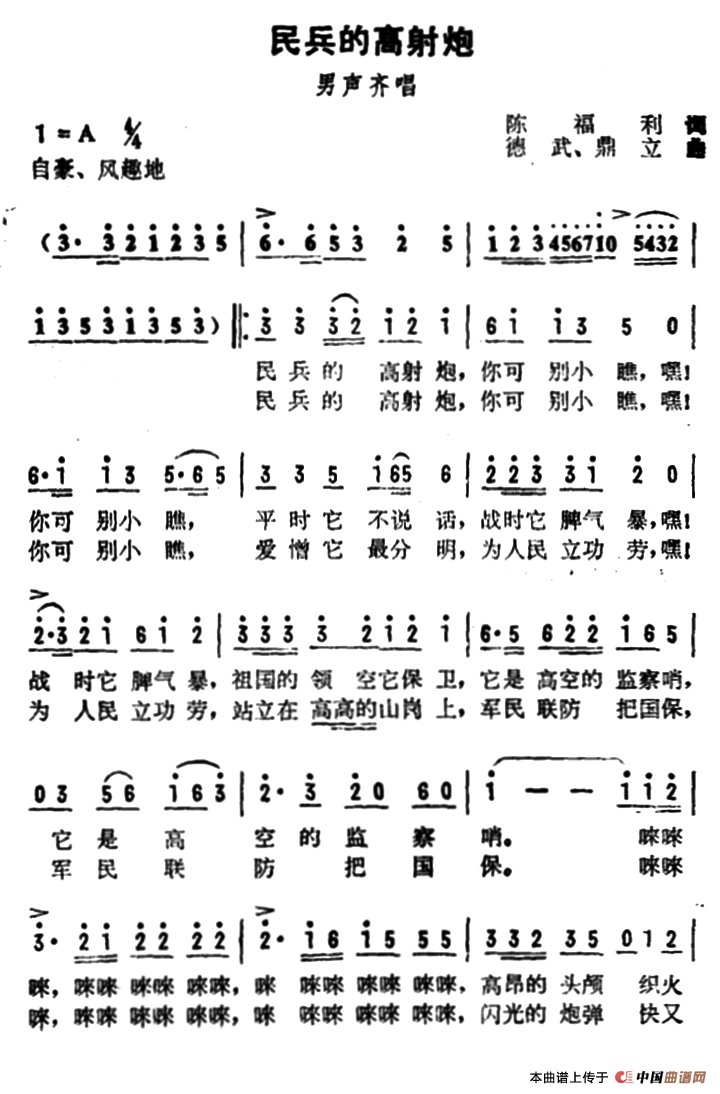 关于《民兵的高射炮》曲谱的评论