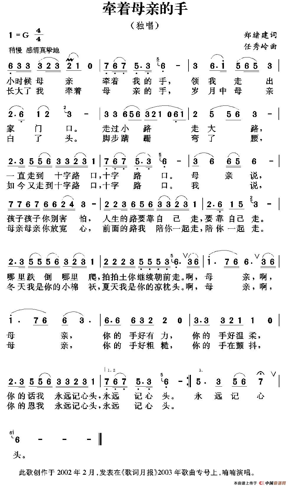 致谢:《中国曲谱网》衷心感谢作者老师馈赠原版歌谱!