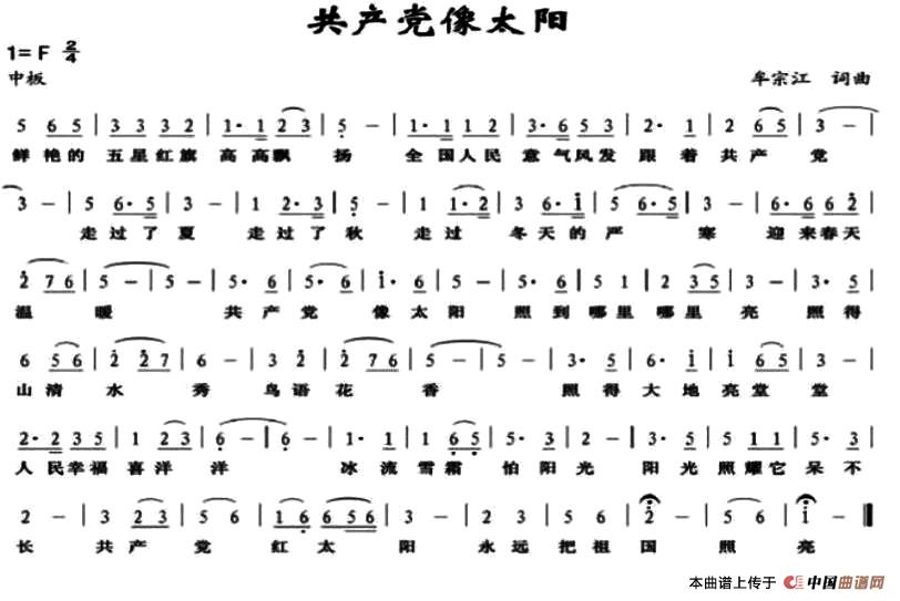 关于《共产党像太阳》曲谱的评论