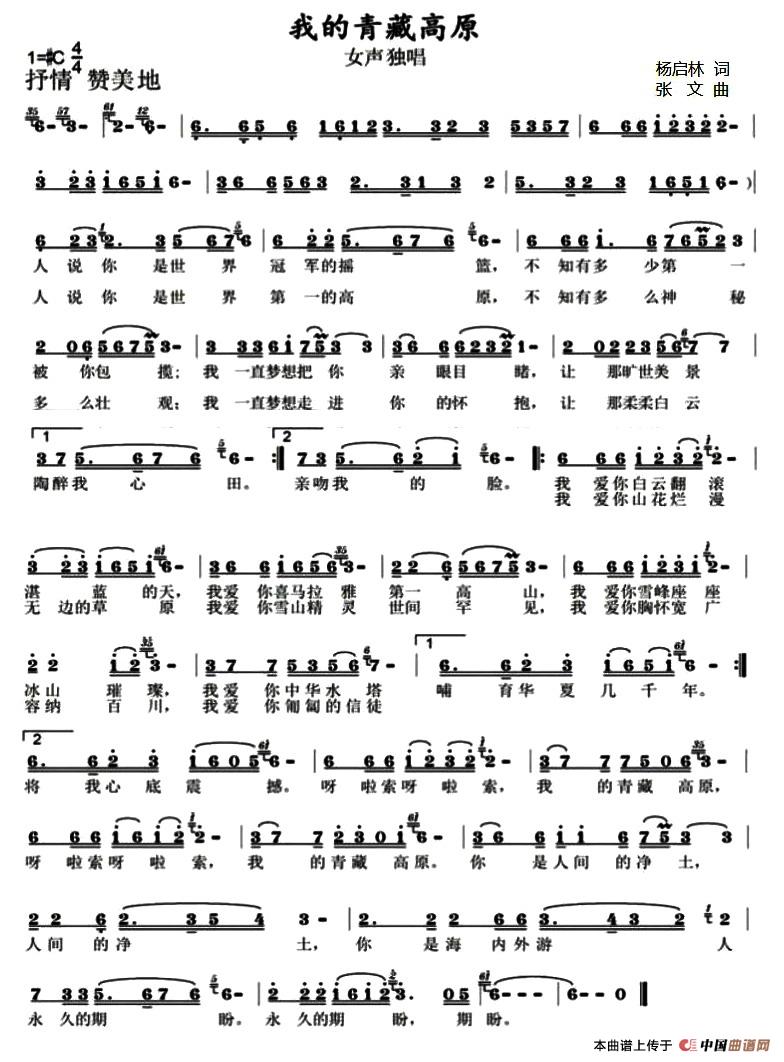 关于《我的青藏高原》曲谱的评论