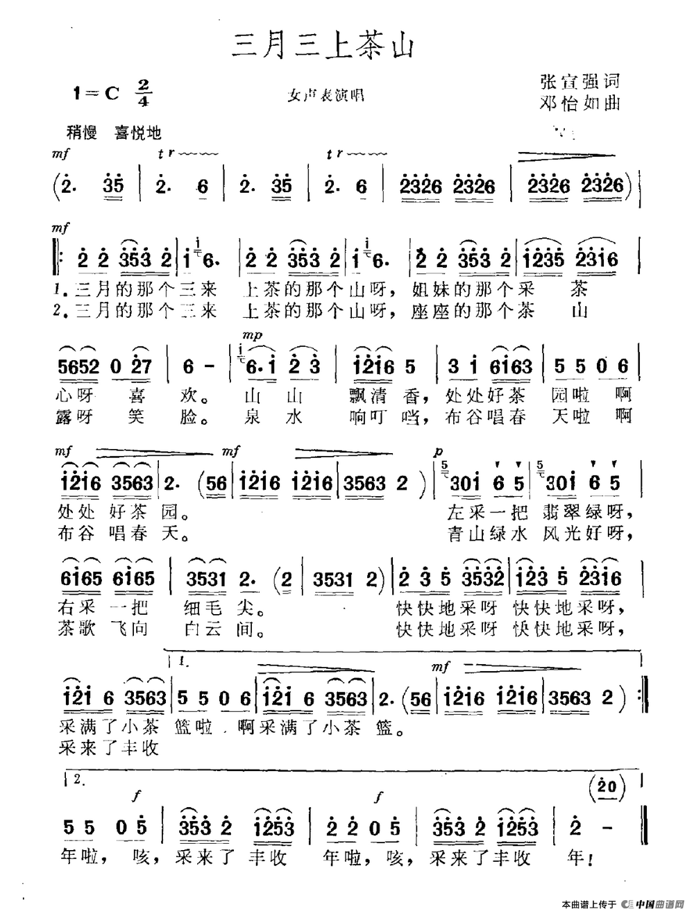 关于《三月三上茶山》曲谱的评论