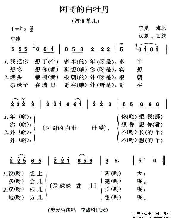 阿哥的白牡丹(河湟花儿)