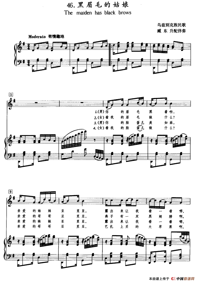 作曲:乌兹别克族民歌 臧东升配伴奏 来源:《中国曲谱网》 上传:秋叶起舞
