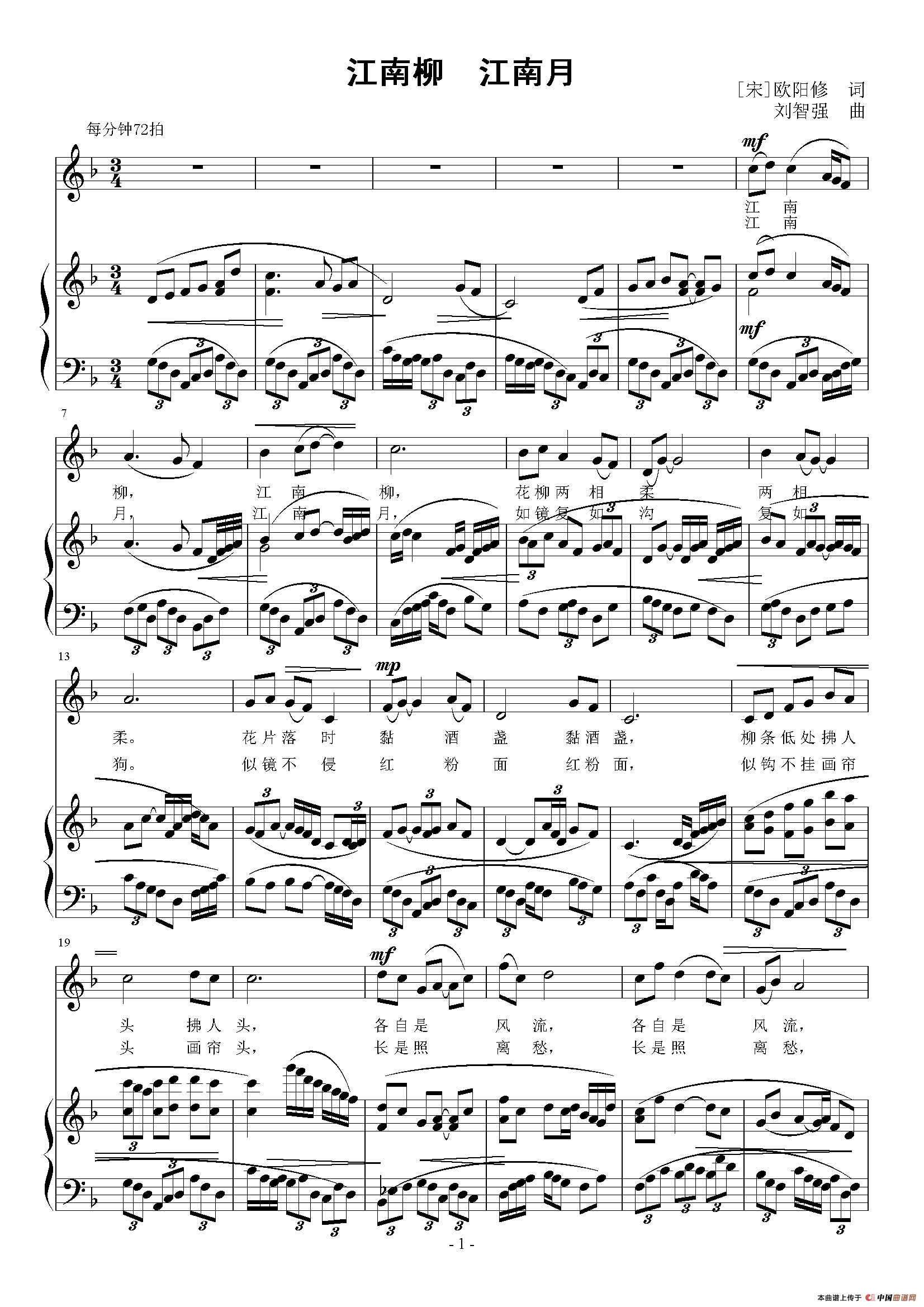 关于《江南柳 江南月》曲谱的评论
