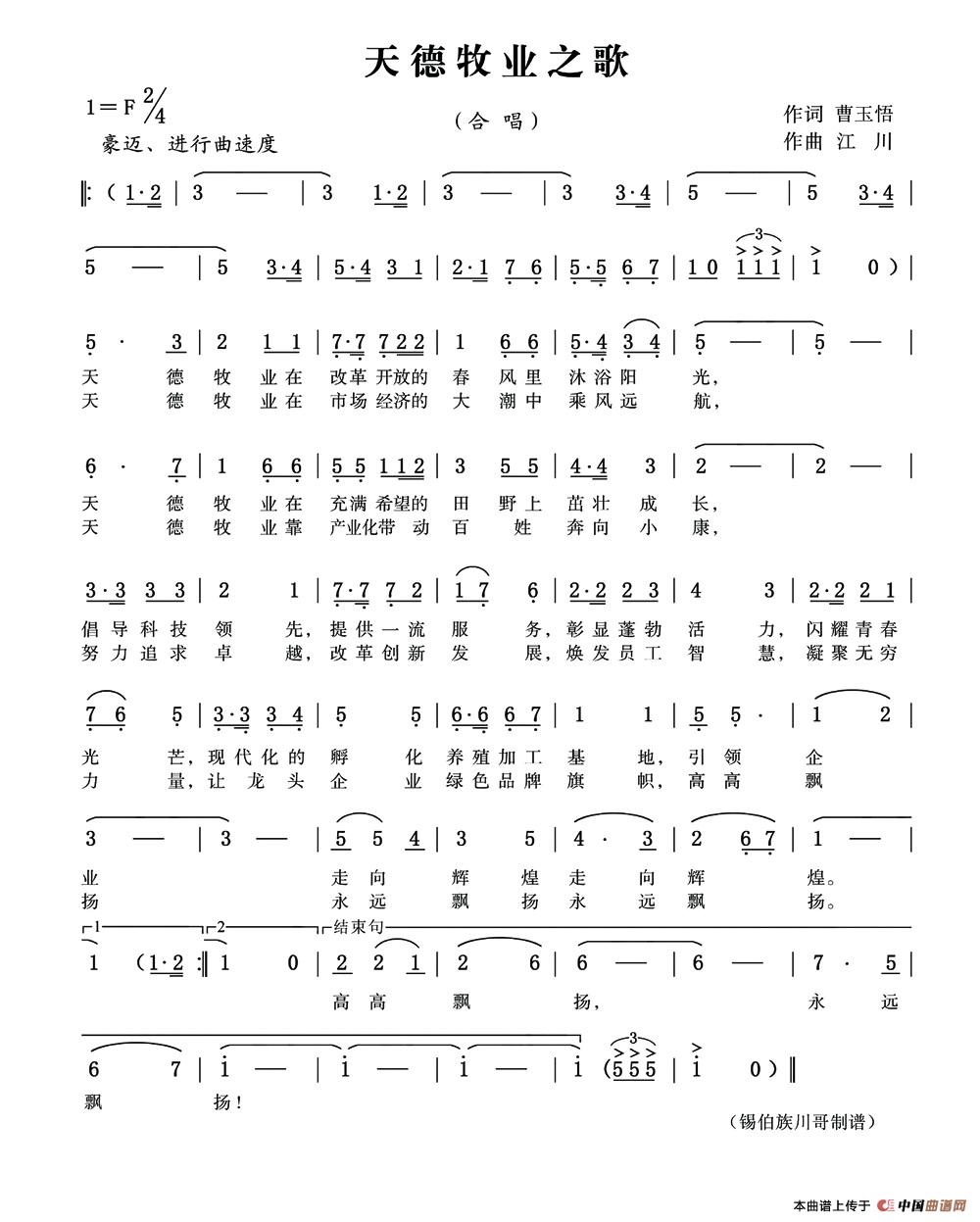 天德牧业的老板关德奎是一个残疾人,他自强不息,身残志坚,克服重重困难,创办了一个农业产业化龙头企业,并由小到大,由弱到强,成为一家拥有上千万资产的大型民营企业。饮水思源,富而思进,关德奎还慷慨解囊,奉献爱心,扶持若干残疾人建起现代化养鸡场。他的事迹闻名遐迩,被人们传为佳话。天德牧业老板的事迹深深感动了我,故与瓦房店市残联的曹玉悟理事长创作了这首歌曲,意在为农业产业化助力,为天德牧业讴歌,为企业文化添彩,为时代发展传递正能量。
