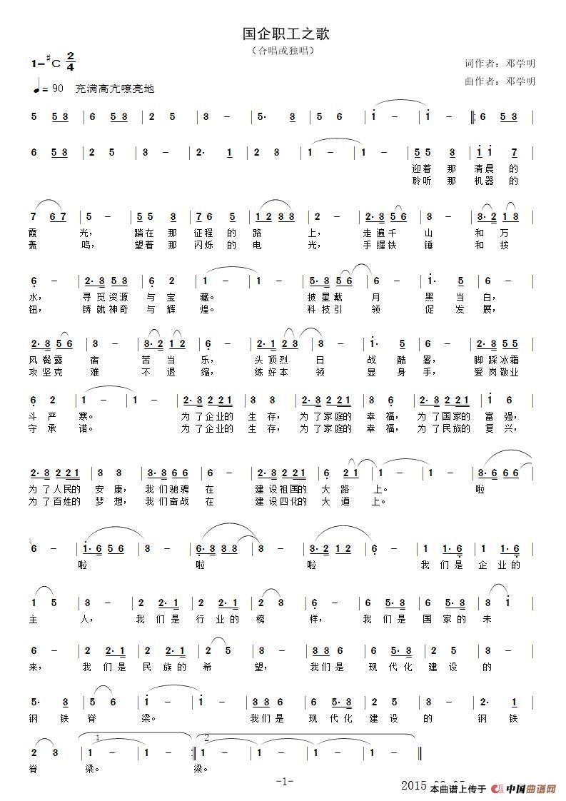 关于《国企员工之歌》曲谱的评论