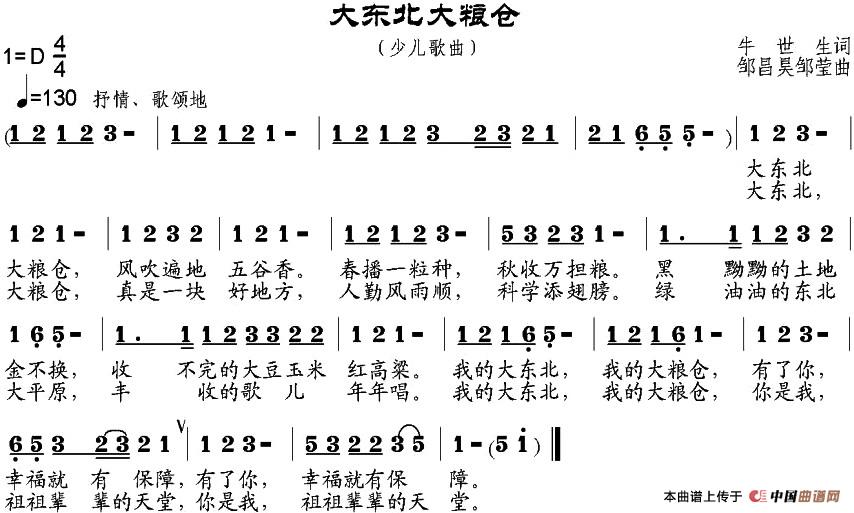 关于《大东北大粮仓》曲谱的评论