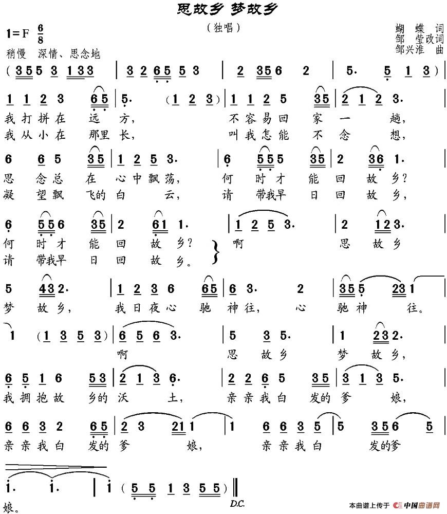 关于《思故乡 梦故乡》曲谱的评论