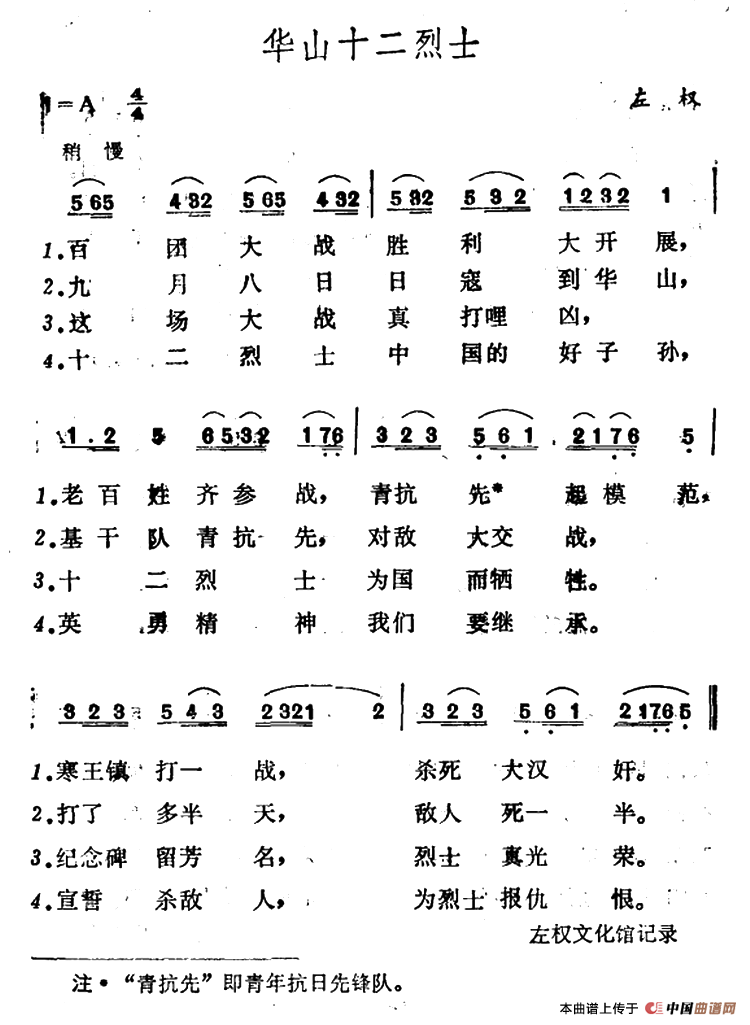 选自山西省音乐舞蹈研究所编《山西民歌300首》,山西左权新民歌。