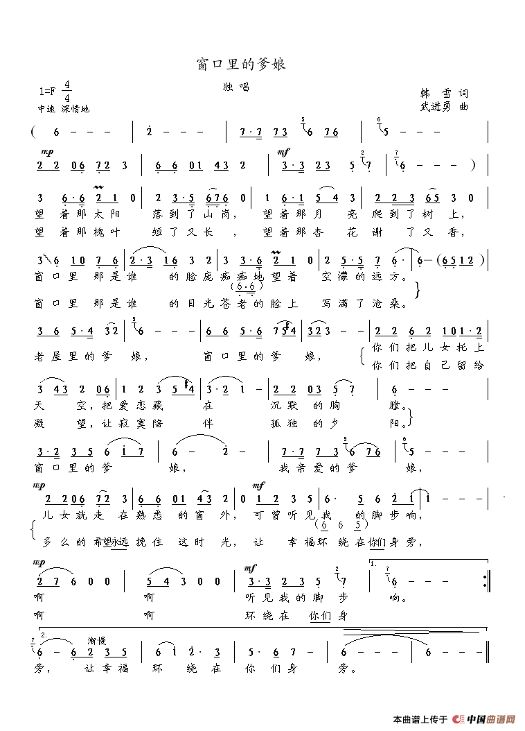 关于《窗口里的爹娘》曲谱的评论