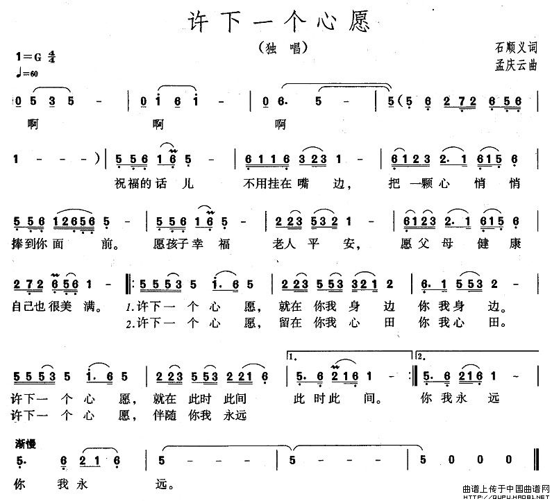 关于《许下一个心愿》曲谱的评论