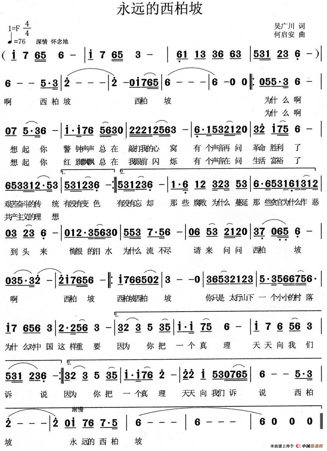 关于《永远的西柏坡》曲谱的评论