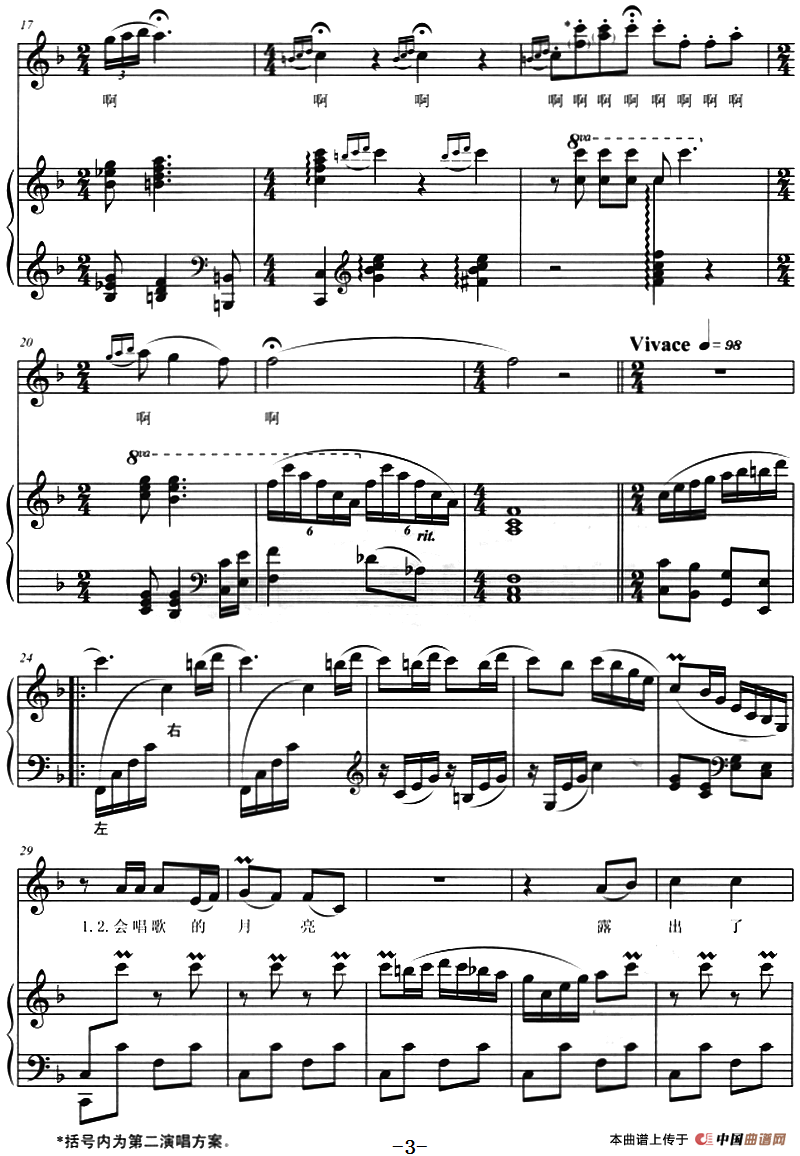 提示:在曲谱图片上单击右键,选择“图片另存为...”即可将曲谱保存到您的电脑中,打印时候可将图片插入到WORD中,调整合适大小打印即可。