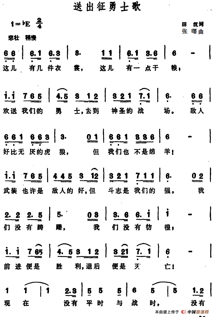 关于《送出征勇士歌 》曲谱的评论