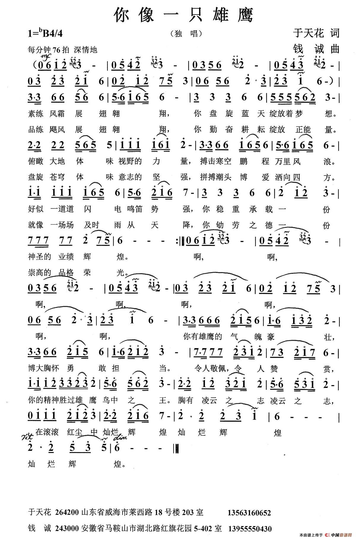 关于《你像一只雄鹰》曲谱的评论