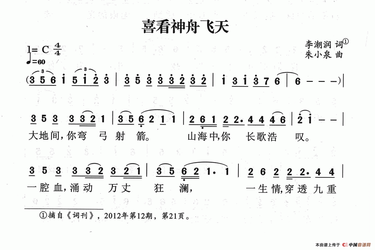 致谢:《中国曲谱网》衷心感谢作者老师馈赠原版歌谱!
