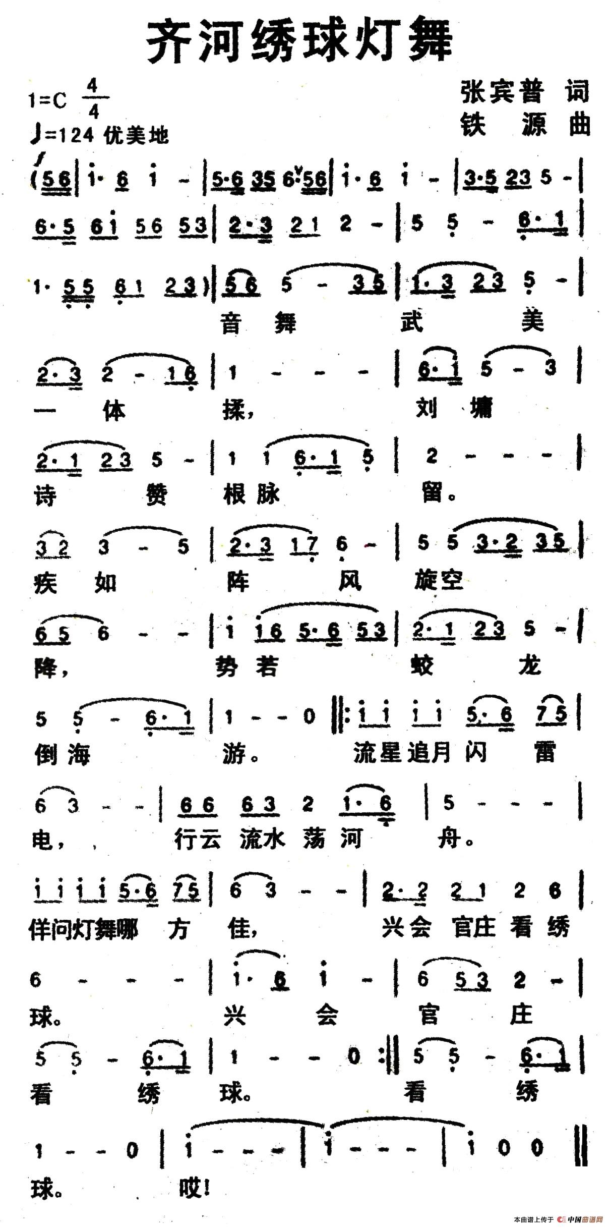 致谢:《中国曲谱网》衷心感谢作者老师馈赠原版歌谱!