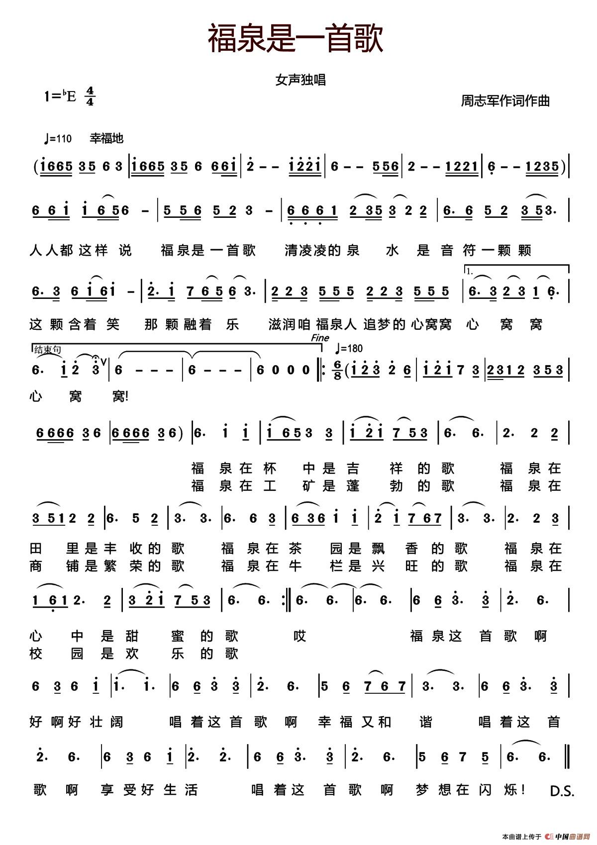 致谢:《中国曲谱网》衷心感谢演唱老师馈赠原版歌谱!