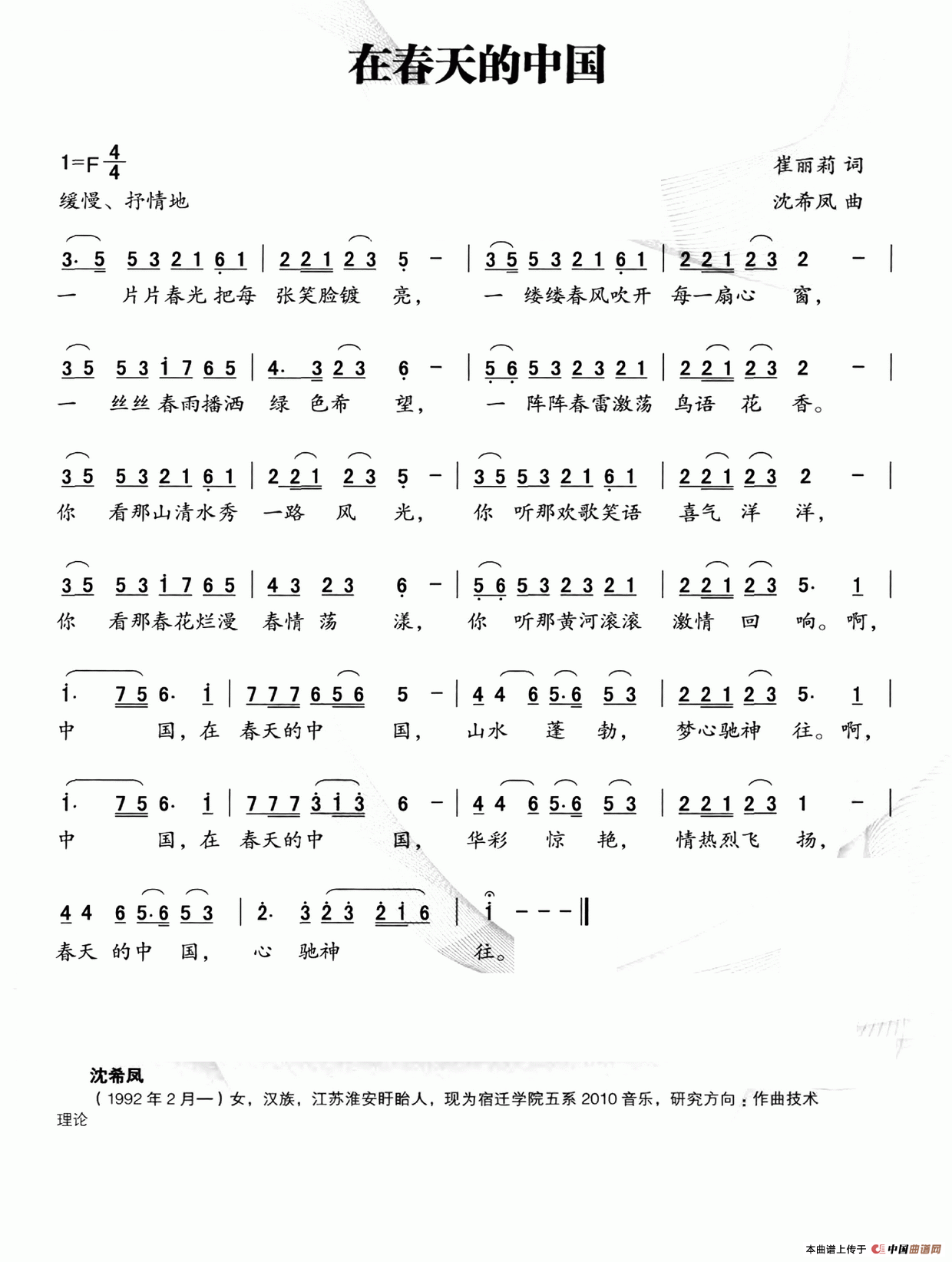 作词:崔丽莉 作曲:沈希凤 来源:《中国曲谱网》 上传:沉舟侧畔过