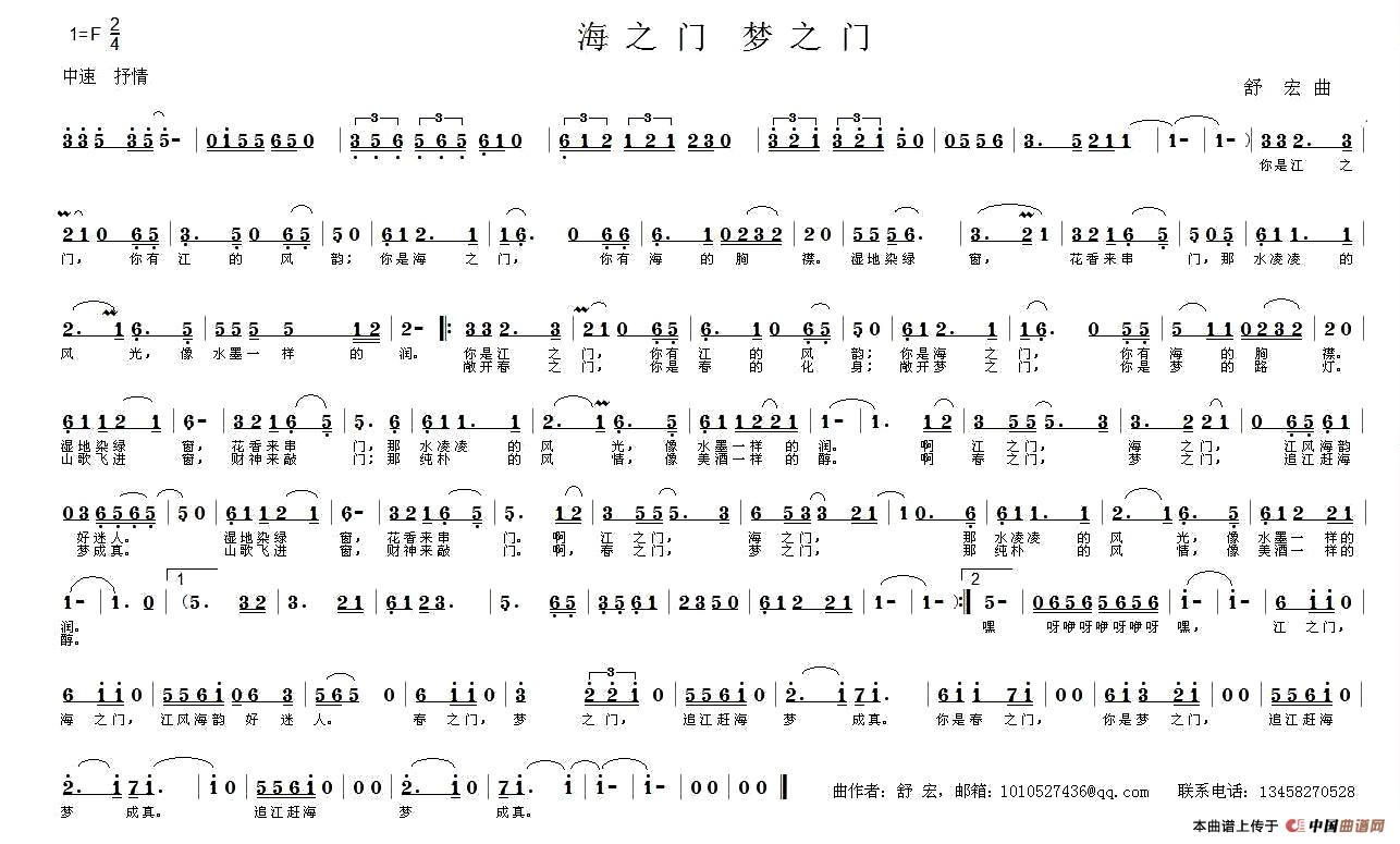 关于《海之门 梦之门(舒宏作曲)》曲谱的评论