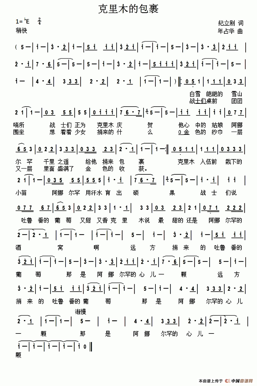 关于《克里木的包裹》曲谱的评论