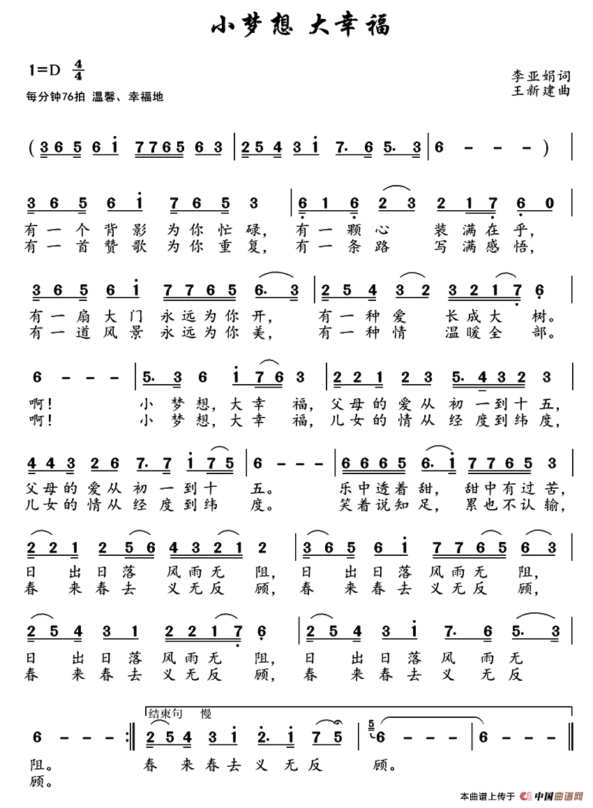 关于《小梦想 大幸福》曲谱的评论
