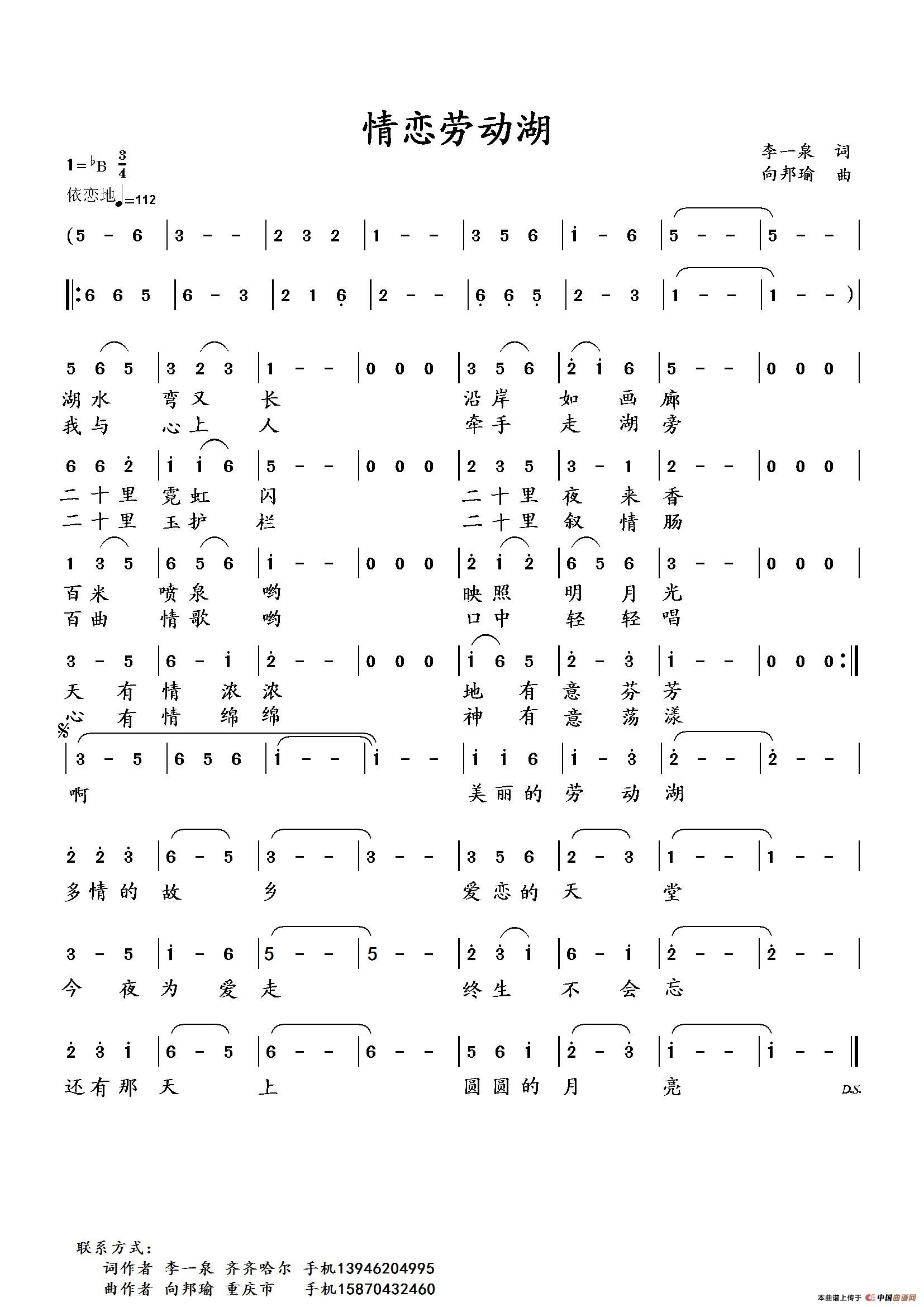 致谢:《中国曲谱网》衷心感谢作者老师馈赠原版歌谱!
