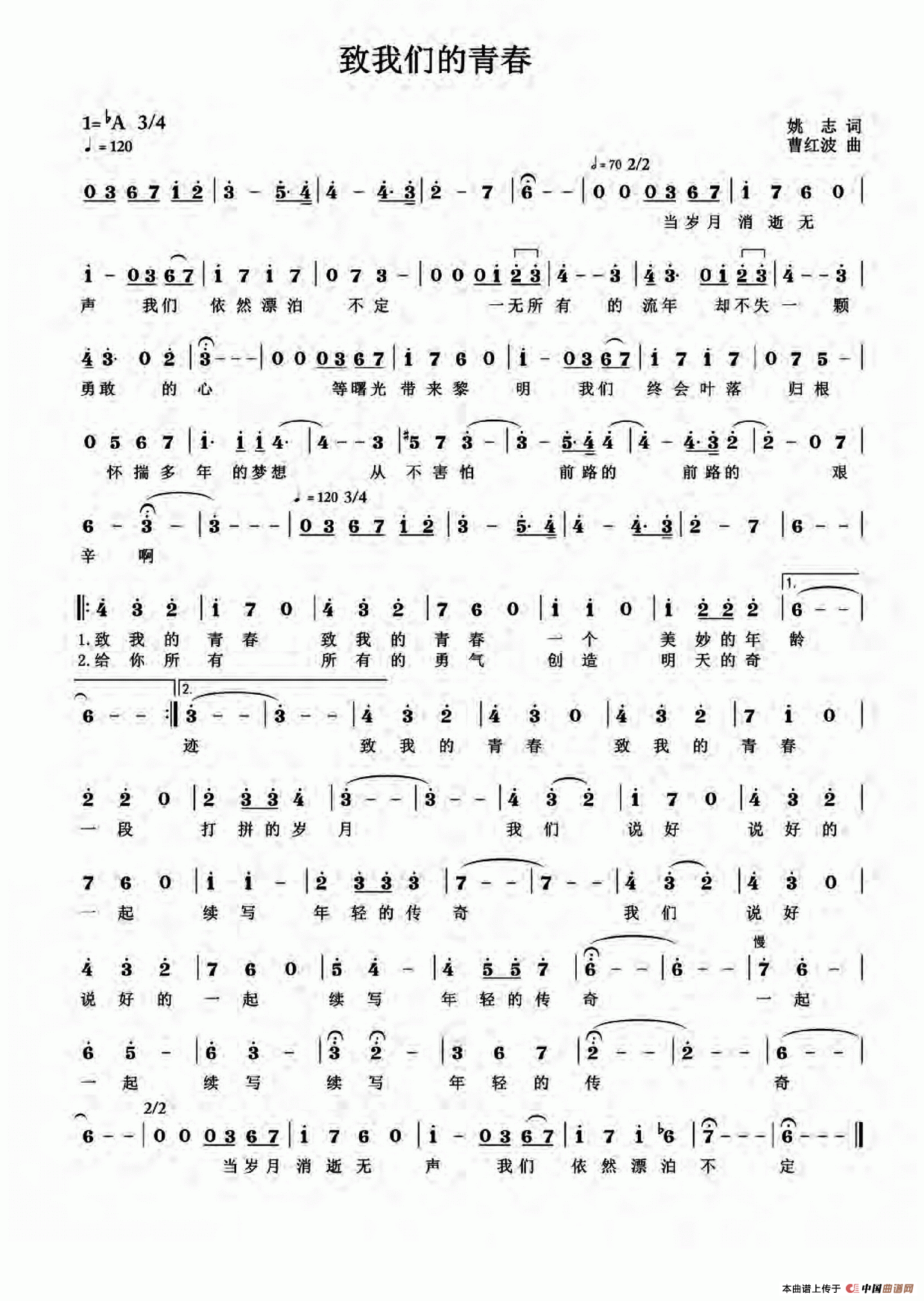 关于《致我们的青春》曲谱的评论