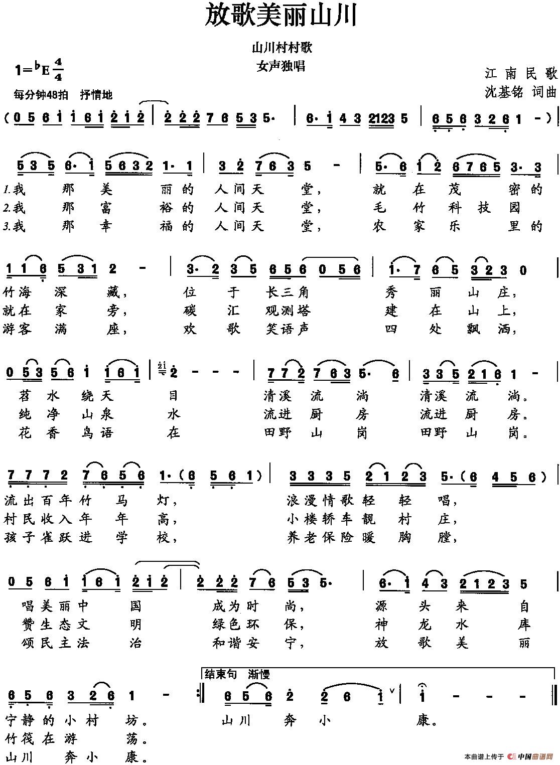 关于《放歌美丽山川》曲谱的评论
