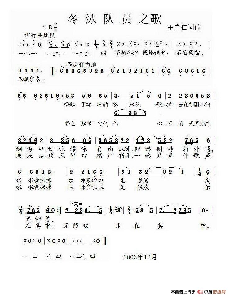 关于《冬泳队员之歌》曲谱的评论