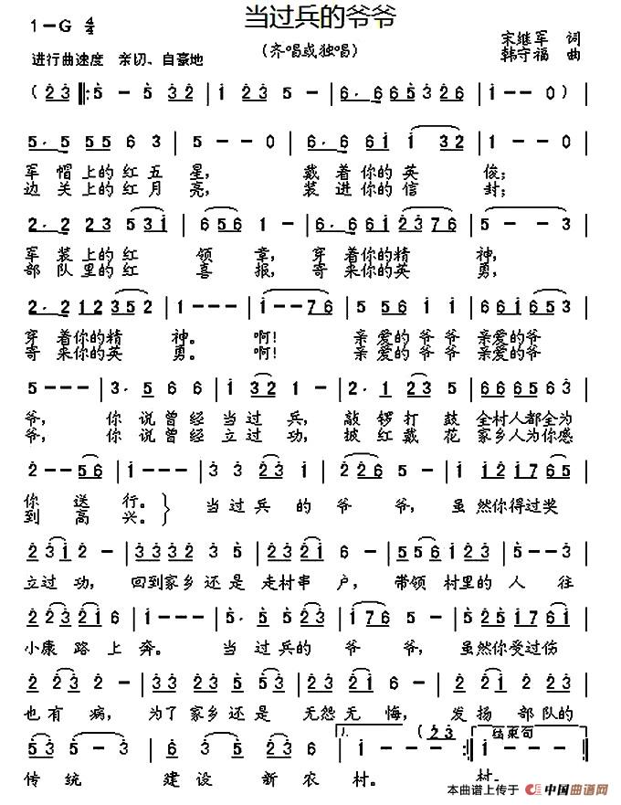 关于《当过兵的爷爷》曲谱的评论