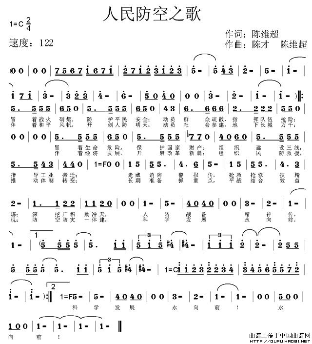 人民防空之歌(陈维超词 陈才、陈维超曲)