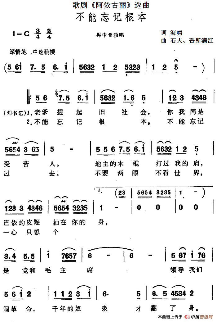 关于《不能忘记根本》曲谱的评论